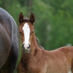 Und hier sind schon unsere nächsten beiden Fohlen des Jahrgangs 2022. Ein braunes Stutfohlen vom Isterberg V. , und ein Fuchs-Hengstfohlen vom Si Bon aus einer Belissimo M Mutter.
