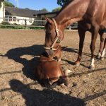 Braunes Fohlen mit Stern und Schnippe (oder unterbrochener Blesse) von Bellini Royal aus Carmen. Das mausgraue Fohlen ist von Spökenkieker aus Follii. Fohlen 2018 von Finest und Instertanz V. Fohlen 2018 von Armigerent xx aus-Rosalie-del-Clintino