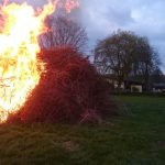 Am Abend des Ostersonntages loderte erst das Osterfeuer für Mitarbeiter und Freunde, dann stellte sich später noch eine Fohlengeburt ein. Eine Stute vom Instertanz erblickte gesund das Licht der Welt.