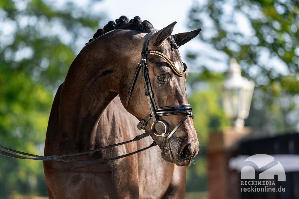 Schon auf seiner Körung konnte dieser imposante Sohn des Siegerhengstes KENTUCKY aus der Zucht von Mette Hansen in Dänemark die in den Holstenhallen zu Neumünster aus aller Welt versammelten Trakehner Fans begeistern. Mit toller Mechanik und stets im Bergauf sicherte er sich souverän seine Zuchtzulassung. Nun, achtjährig und weit gereift, besticht er unter dem Sattel durch seine hervorragende Rittigkeit, hervorragende Grundgangarten und eine enorme Versammlungsbereitschaft, was ihm eine klare Perspektive für den großen Dressursport vorzeichnet. Das jedoch kommt nicht von ungefähr….